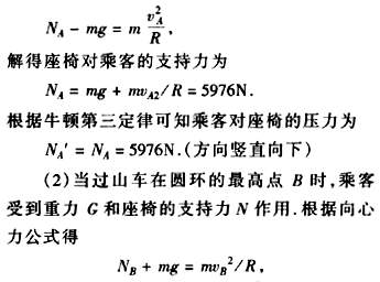 解析 (1)当过山车在圆环的最低点A时,乘客受到重力G和座椅的支持力N作用,这两个力的合力是乘客做圆周运动的向心力.根据向心力公式,得