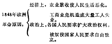 在高中历史教学中,对历史原因的教学——由于其自身的重要、教材的重视和测试中的重比——有着十分显著的意义。 一、历史原因的多层次归类 历史原因指的是:引起某一历史事件发生或分析、归纳某一历史现象之所以存在的历史要素。是历史必然性(寓偶然性)的反映。中学历史教材中,历史原因的分析有不同形式的体现、不同角度的表述和不同方位的主足点。 (一)、从历史原因分析的表象来看,有不同形式的体现。 第一、“条线式”。 例1:“亚洲觉醒”的原因。 列强殖民侵略→亚洲人民掀起反帝反封建高潮。 例2:帝国主义重新瓜分世界的原因。 政治、经济发展的不平衡→改变了帝国主义国家间的力量对比→产生新矛盾→重新瓜分世界。 这种纵切式的历史原因分析,我们可以简单称之为“条线式”。例1为“单线”,例2为“递进”。 第2,“并列式”。 例1:1848年欧洲革命发生原因。