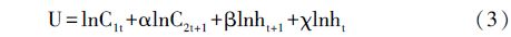 个体在利他主义下关心其青年期消费、老年期消费、健康水平及其父母健康水平。因此,设定效用函数如下: