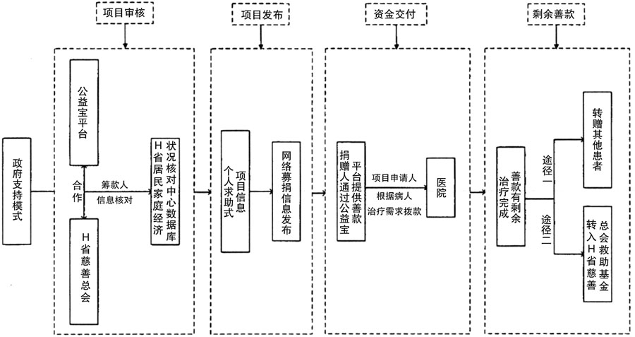 一、引言 党的二十届三中全会提出了要“构建初次分配、再分配、第三次分配协调配套的制度体系”,“支持发展公益慈善事业”。第三次分配可以在道德的驱使下,依靠个人自愿性捐款展开再分配,从而鼓励企业和高收入人群更多回报社会,推动共同富裕。[1]在我国脱贫攻坚战取得全面胜利后,第三次分配也是缓解“相对贫困”的重要手段。[2] 随着互联网时代的到来,第三次分配的广泛参与使互联网慈善影响力持续升温。各大平台慈善参与方式的开发也影响着整个慈善行业的理念与模式创新,这些都能推动第三次分配加快向大众化发展。[3]网络医疗众筹作为互联网慈善的新形式,是一种基于捐赠的众筹形式,指的是利用互联网平台筹集资金以支付医疗救治有关费用的众筹活动,[4]具有“三次分配”的功能。[5]网络医疗众筹一定程度上充实了医疗救助的综合能力,能够弥补政府供给不足,实现了救助模式创新,是大病救助新的渠道。[6] 医疗众筹的特点在于能够突破时间和空间的限制,在极短的时间内,筹集到大量的资金,为需要的人提供及时帮助,为求助人和赠与人之间提供了桥梁。[7]这样的特点使其优势明显,一是能够弥补初次分配、再分配的不足,发掘第三次分配的巨大潜力;[8]二是能够通过互济互助防止因病致贫,减轻“相对贫穷”;[9]三是能够补齐现有医疗保障的短板,推进健康中国建设。[10]医疗众筹在具有独特优势的同时,也具有不同于一般赠与行为的特点。在医疗众筹中,参与众筹的好心人捐款被用于帮助无力承担医疗费用的重病患者,减轻他们的医疗费负担。然而,在现实中,有很多众筹款项被滥用的情况。[11]“高薪演员众筹”“学生善款炫富”“男子卷款失联”等案例引发关注,不断削弱着公众对医疗众筹的信任度。若医疗众筹在发展的起步阶段就朝着错误的方向野蛮生长,势必会损害医疗众筹在人们心目当中的口碑和号召力,影响其长期可持续的发展,也无法发挥其独特优势。因此,模式选择至关重要。 我国医疗众筹的现存发展模式可大致分为三类。一是政府主导的政府支持模式,以H省慈善总会与公益宝平台合作形式为代表。[12]二是慈善机构为主导的模式,以X慈善基金会众筹平台为代表。[13]三是商业医疗众筹模式,以S平台、Q平台和A平台三大网络众筹平台为代表。[14]2021年9月,国务院办公厅发布《“十四五”全民医疗保障规划》,提出要积极引导慈善等社会力量参与救助保障,促进医疗救助与其他社会救助制度的衔接。而医疗众筹作为具有重大潜力的大病救助新形式,各方如何参与,哪一种运行模式更高效,更适合长远发展,是值得探讨的重要课题。目前学界关于医疗众筹的关注点主要在医疗众筹的现状,并针对众筹存在的问题提出了一些防范方法,[15][16][17]或是立足于法律层面,根据现有法律对医疗众筹的发展进行了分析。[18][19[20][21]仅有朱睿[22]侧面提到过医疗众筹的模式。总体上看对医疗众筹模式的评估和反思比较少,不足以为政府前瞻性地引导医疗众筹发展、建立和完善相应的监管制度提供理论支持。基于上述研究的空缺,本研究从第三次分配和多方参与的视角出发,尝试比较分析三种医疗众筹模式,探索哪一种模式更适合我国医疗众筹发展,并为政府下一步的引导策略和制度设计提出建议。 二、三种医疗众筹模式的基本情况 (一)政府支持模式 H省慈善总会启动了“慈善医疗众筹”项目,并与民政部指定的网络募捐信息发布平台之一公益宝合作,发布众筹项目信息。公益宝平台在H省政府的支持下,接入H省居民家庭经济状况核对中心数据库,在项目审核阶段利用信息技术自动核对筹款患者的经济状况,减少了申请人和受益人材料造假现象。个人网络众筹项目在公益宝平台上筹集到的资金,项目发起人或受益人不得提现,由项目申请人根据患者的治疗需要拨款给医院。患者治疗结束后的剩余资金可直接转赠给平台上的其他患者或存入H省慈善基金会的救助基金。[23] (二)基金会主导模式 B市采用的模式主要体现在针对儿童大病的慈善捐赠中。X慈善基金会是一个旨在帮助白血病患者的公募基金会。对于个人求助,X慈善基金会安排专门的社工与患者联系。专门的社工根据患者提供的信息撰写求助材料,并上传至求助平台。筹集到的资金由X慈善会直接支付到患者所在的医院账户。资助完成后,社工还将定期电话回访,为患者提供专业建议。[24]